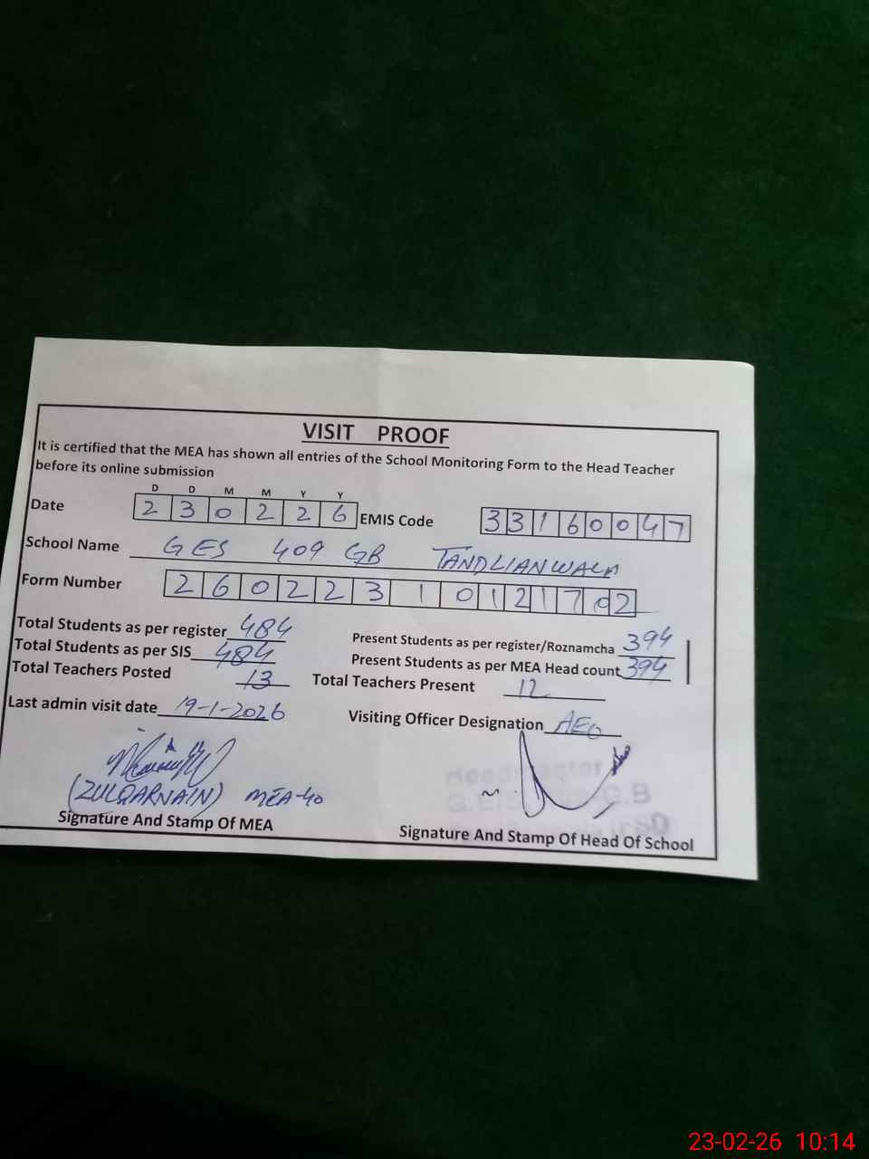 | Certified that this School was Inspected by the Undersigned MEA/DMO Today and the Information Stated Above is as Per Record. | |||||