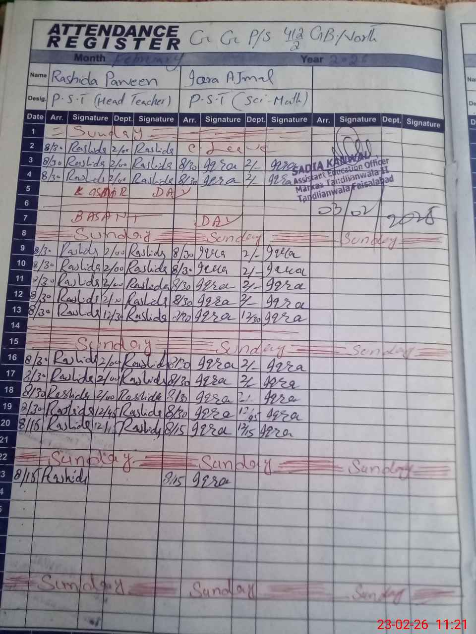 | District: FAISALABAD | Tehsil: TANDLIAN WALA | Markaz: TANDLIANWALA 2 - FEMALE | Level: Primary | |