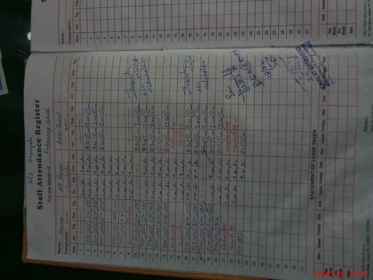 | Name: MU**** TA**** Designation: (School Headmaster's/Headmistress's) SST Phone/Cell Number: 03**** |