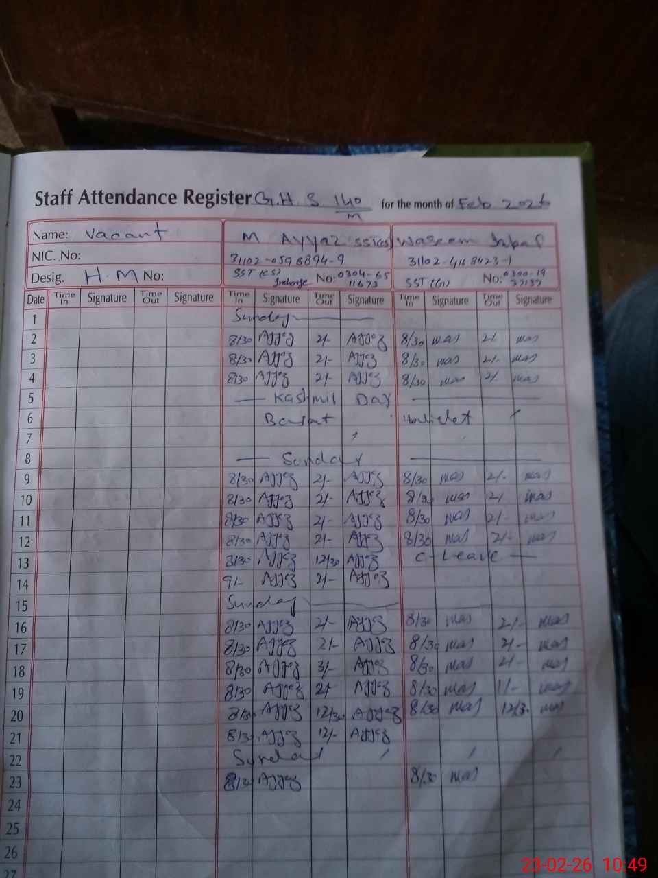 | 31**** | Gh**** Fa**** | SST Science | Regular | 2 | 0 | 0 | 0 | 0 | 0 | 0 | 0 | 2 | Casual |