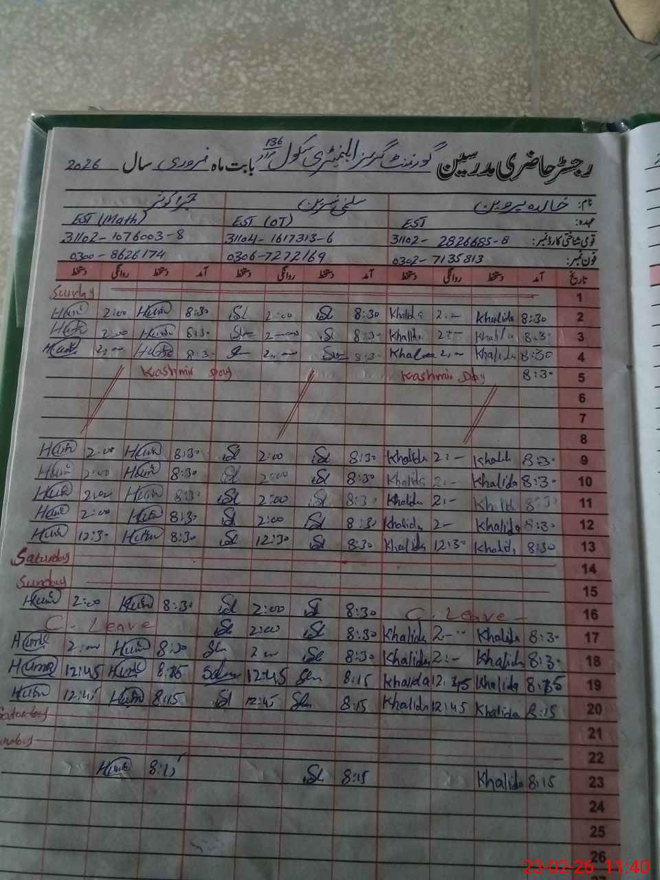 | Name: KH**** PE**** Designation: (School Headmaster's/Headmistress's) E S T OT Phone/Cell Number: 03**** |