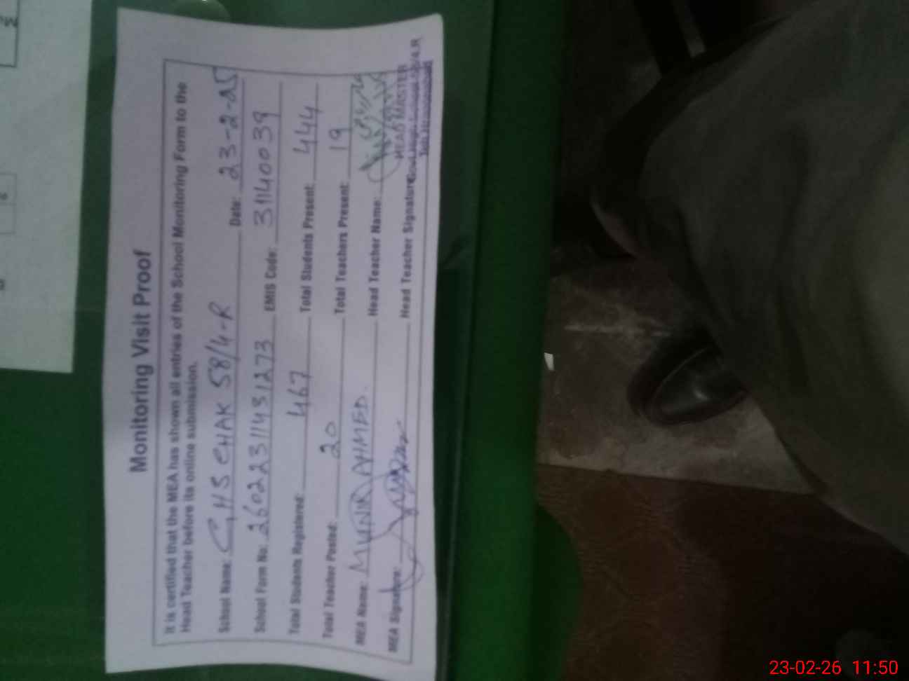 | EMIS Code: 31140039 | Name of School: GHS CHAK 58/4-R | |||