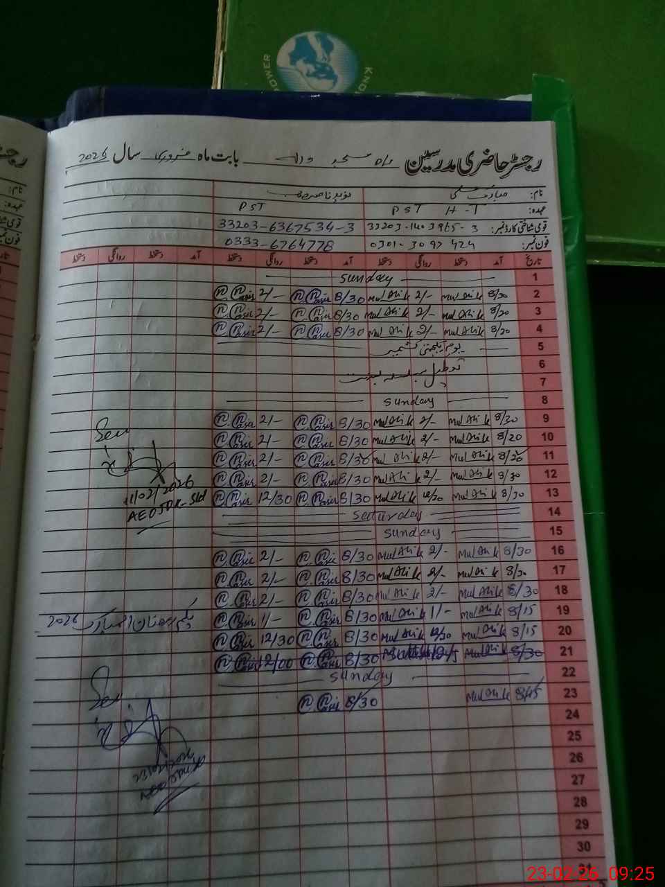 | Name: MU**** AL**** Designation: (School Headmaster's/Headmistress's) PST Phone/Cell Number: 03**** |