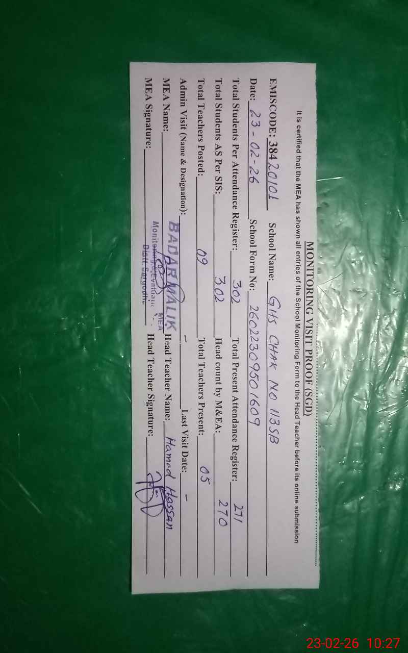 | EMIS Code: 38420101 | Name of School: GHS CHAK NO.113 SB | |||