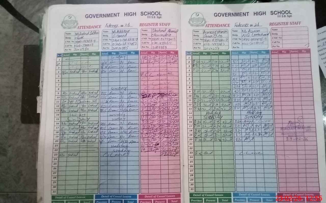 | CNIC | Full Name | Designation | R/C | Absence During Last Calender Month |