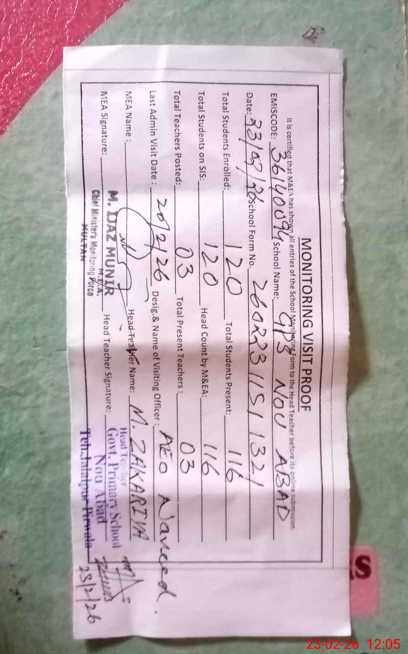 | EMIS Code: 36140094 | Name of School: GPS NOU ABAD JALALPUR PIRWALA | |||
