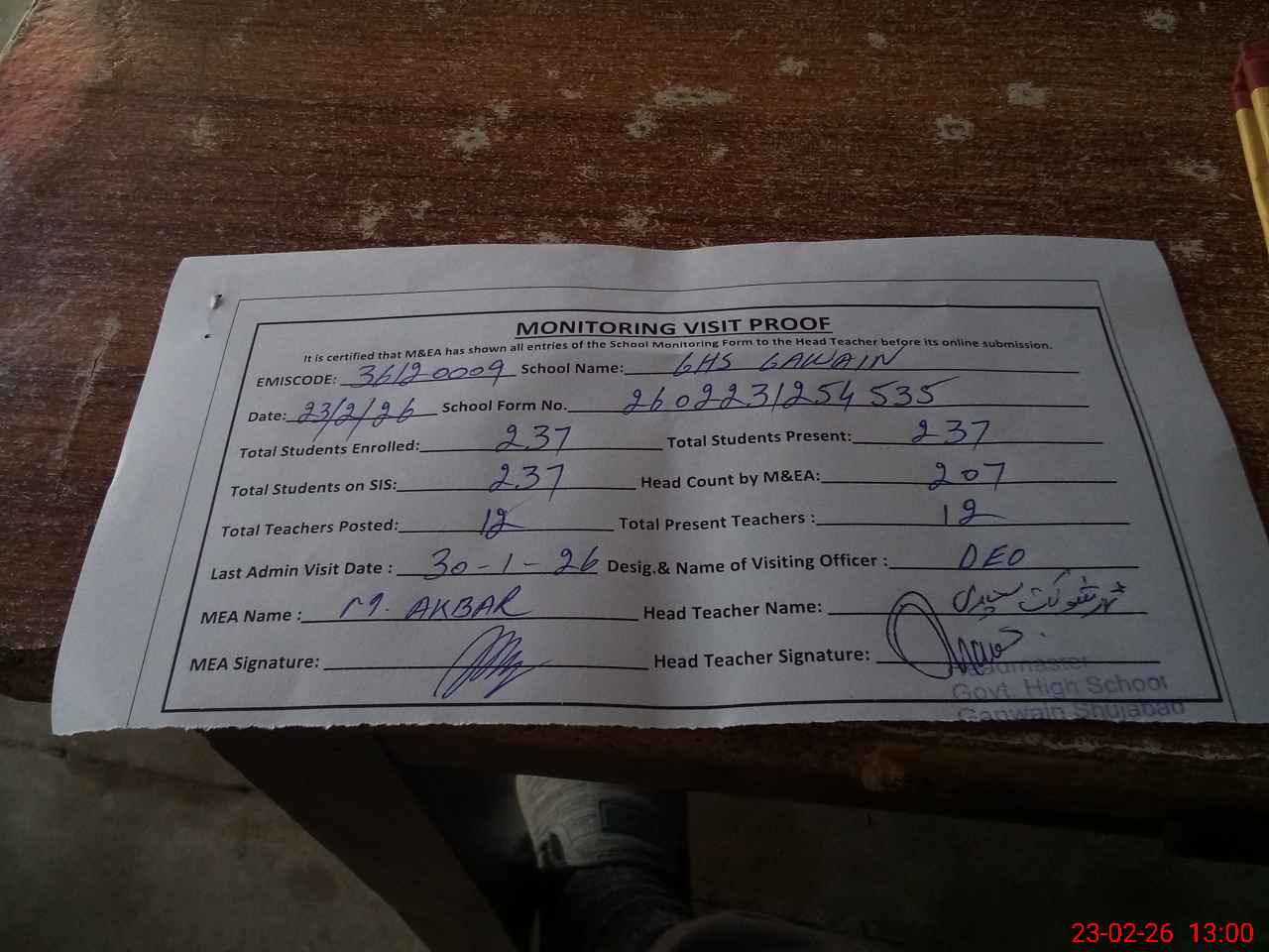 | EMIS Code: 36120009 | Name of School: GHS GAWAIN MOZA GANWEN TEH. SHUJABAD | |||