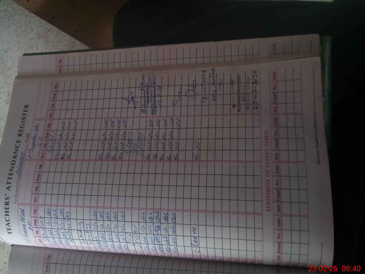 | Name: MU**** SH**** Designation: (School Headmaster's/Headmistress's) PTC/JV Phone/Cell Number: 03**** |