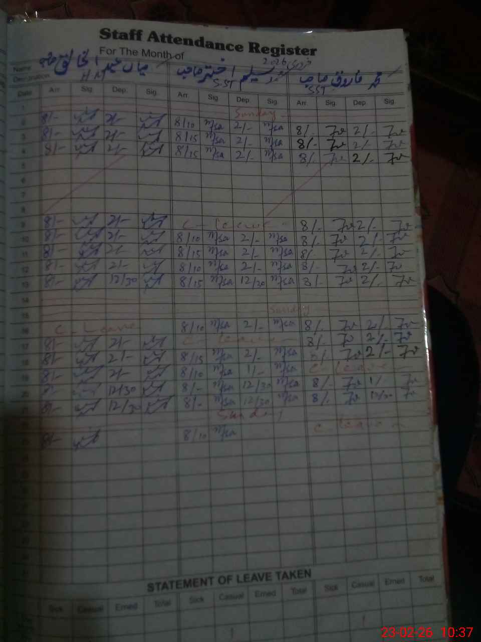 | 36**** | Kh**** Sh**** | PST Arts | Regular | 0 | 0 | 0 | 0 | 0 | 0 | 0 | 0 | 0 | Casual |