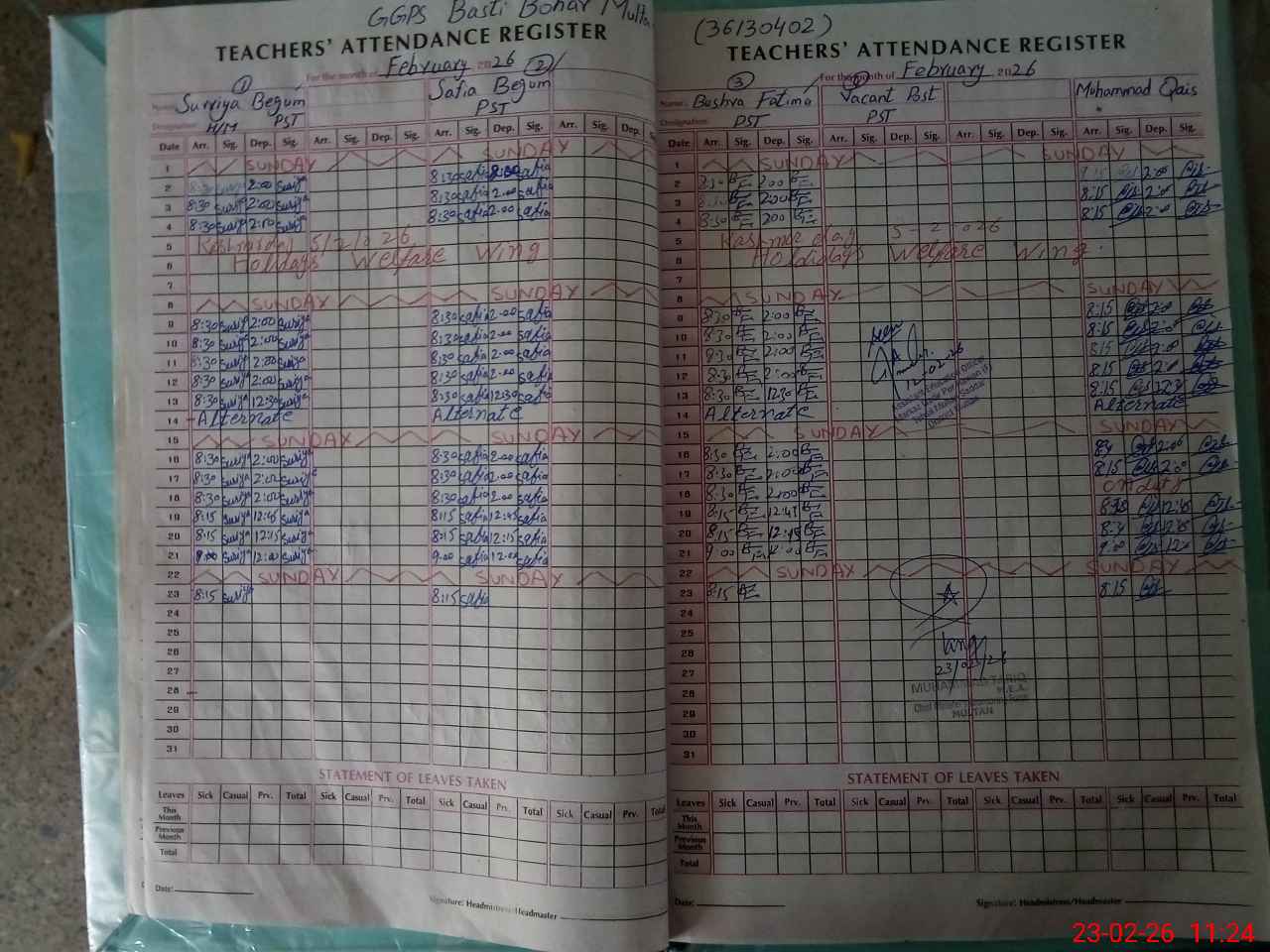 | EMIS Code: 36130402 | Name of School: GGPS BOHAR BASTI BOHAR MULTAN | |||