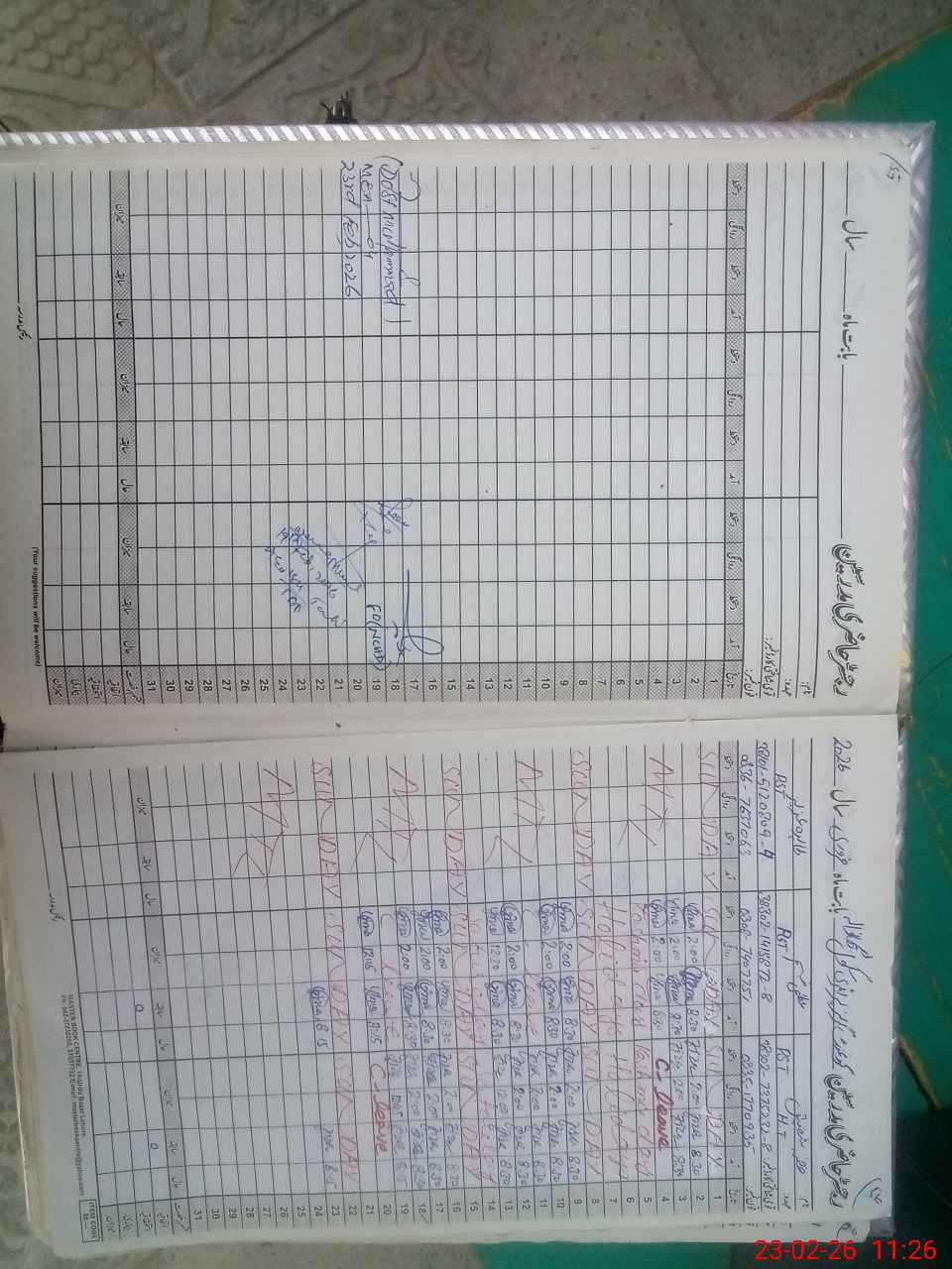 | CNIC | Full Name | Designation | R/C | Absence During Last Calender Month |