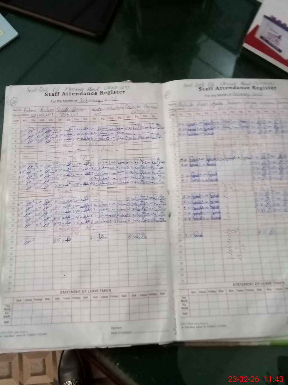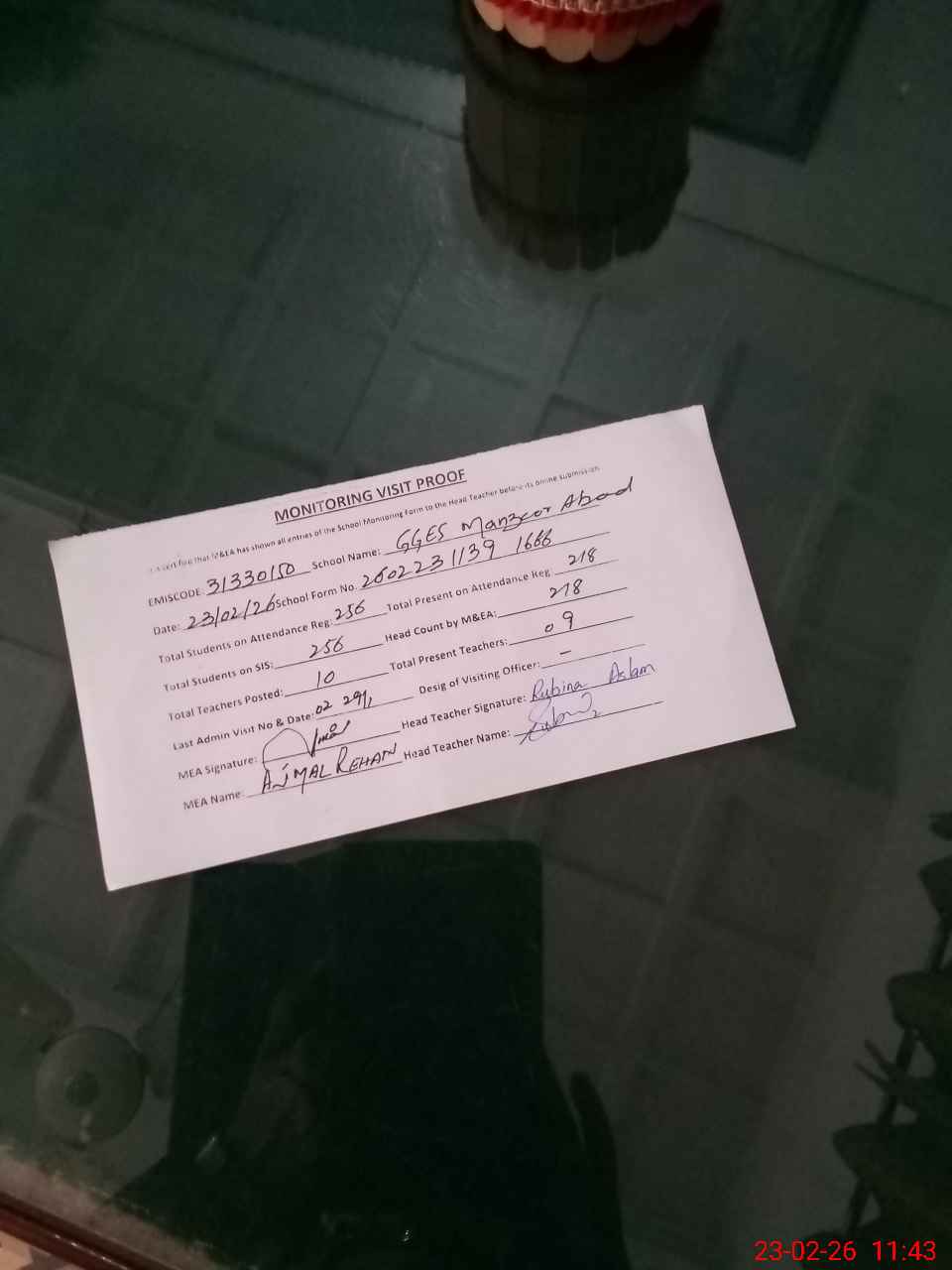 | Attendance Register | Head Teacher | MEA with School | Visit Proof |