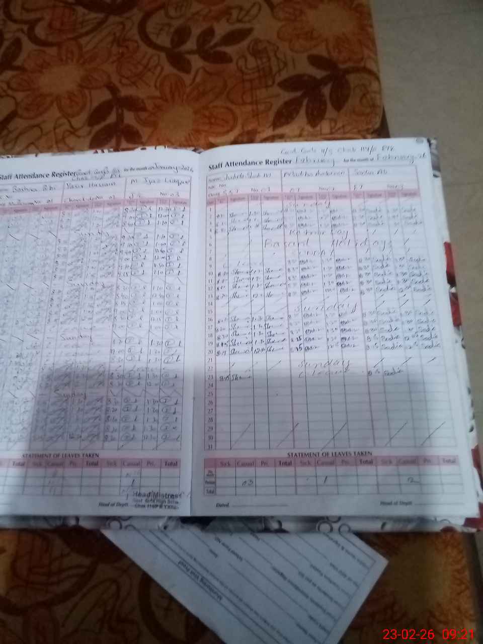 | Attendance Register | Head Teacher | MEA with School | Visit Proof |
