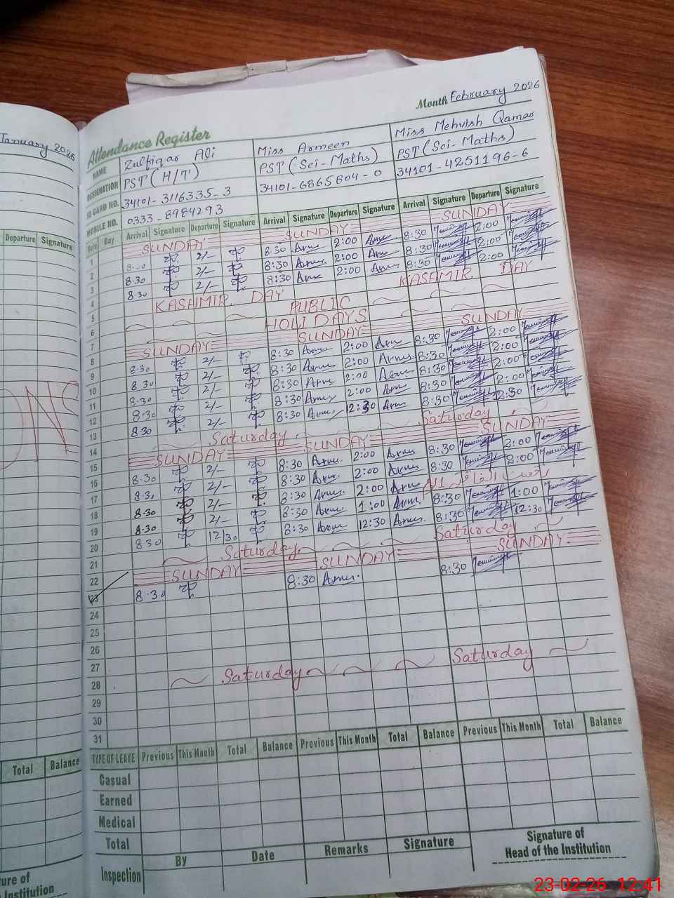 | Name: ZU**** AL**** Designation: (School Headmaster's/Headmistress's) PST Phone/Cell Number: 03**** |