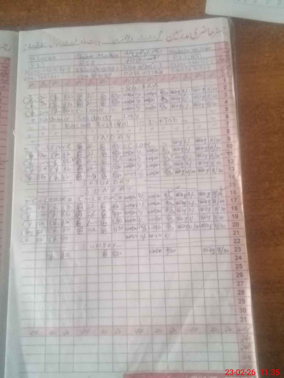 | Name: MU**** HU**** Designation: (School Headmaster's/Headmistress's) PST Phone/Cell Number: 03**** |