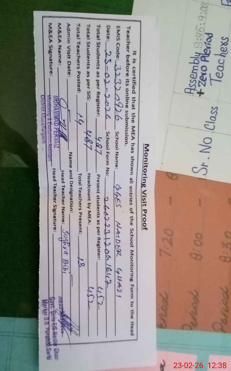 | EMIS Code: 32320926 | Name of School: GGES HAIDER GHAZI | |||