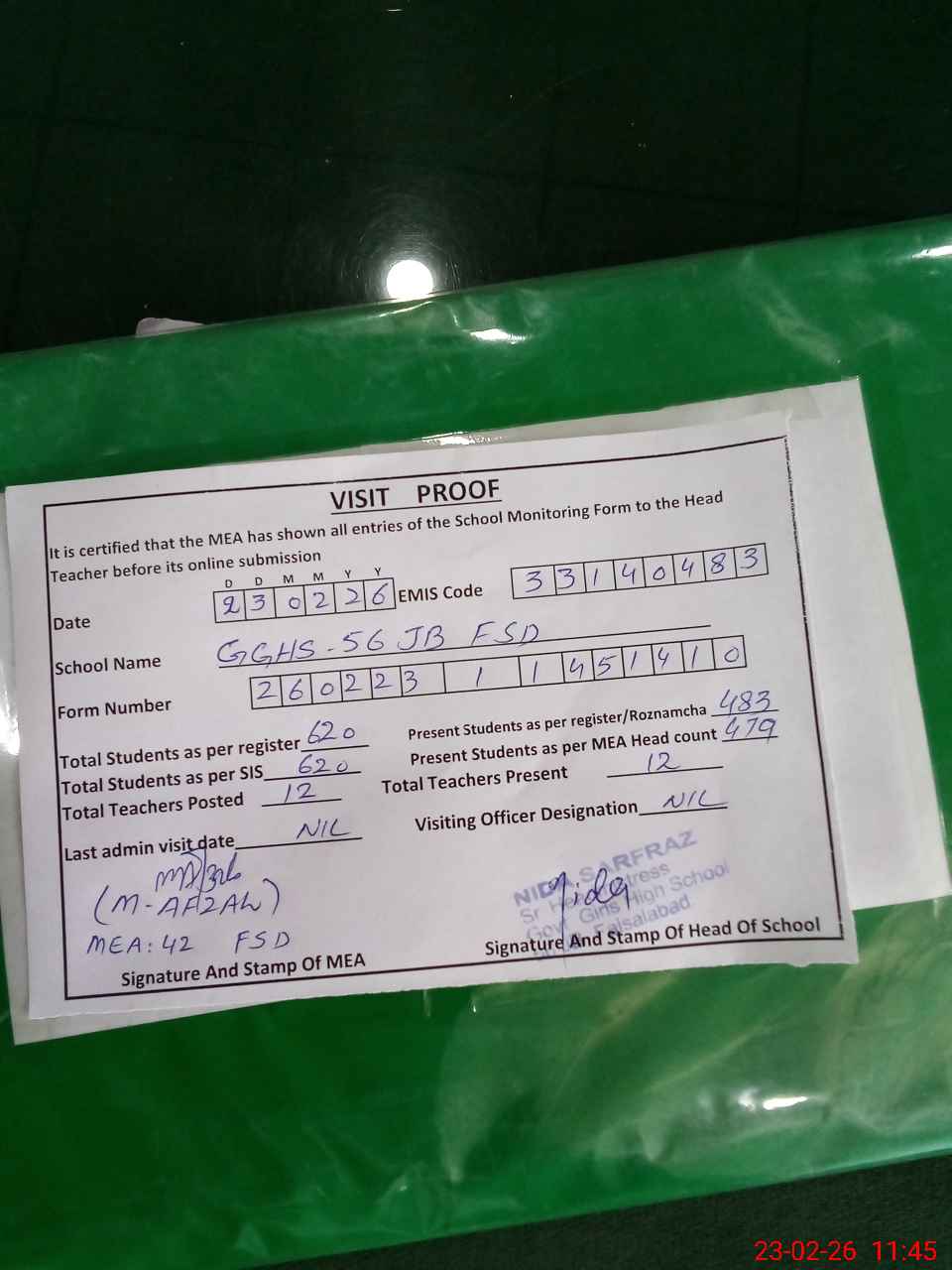 | EMIS Code: 33140483 | Name of School: GGHS CHAK 56 JB | |||