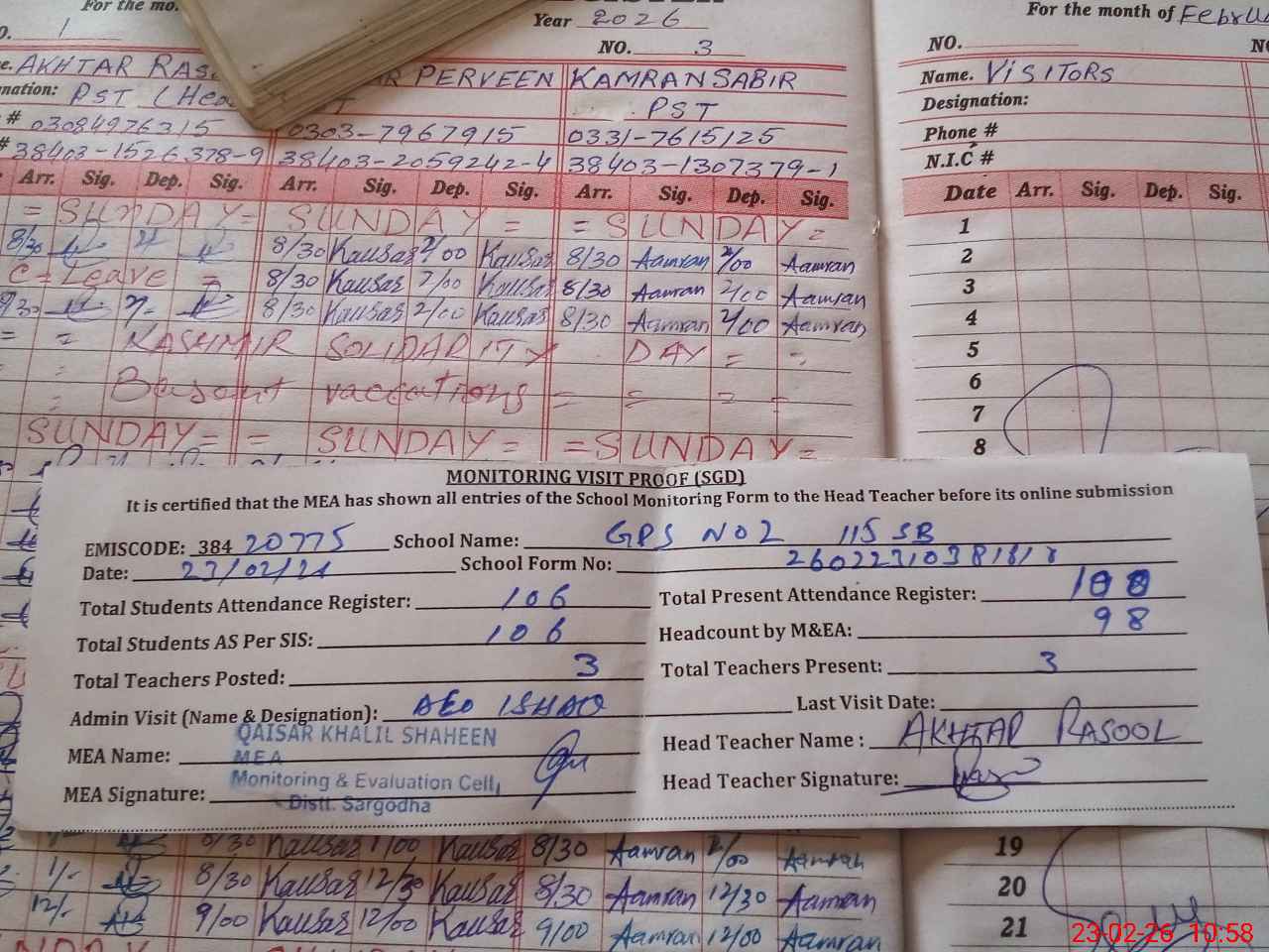 | EMIS Code: 38420775 | Name of School: GPS NO 2 CHAK NO 115 SB | |||