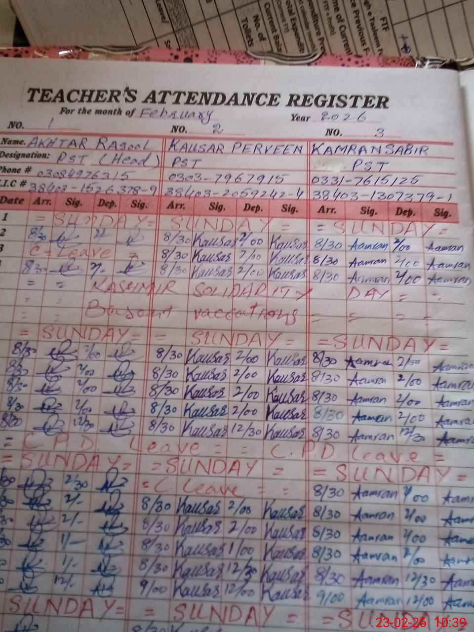 | Name: AK**** RA**** Designation: (School Headmaster's/Headmistress's) PST Phone/Cell Number: 03**** |