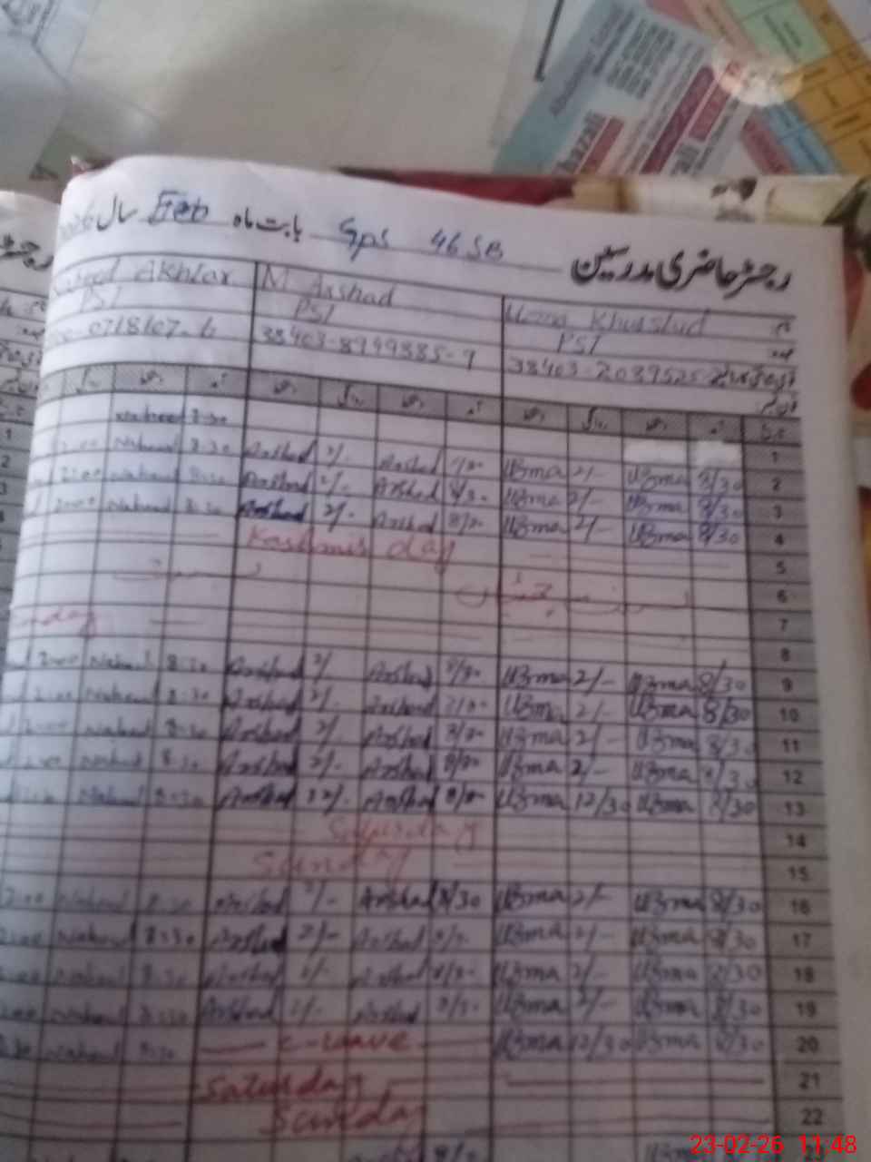 | Name: UZ**** KH**** Designation: (School Headmaster's/Headmistress's) PST Phone/Cell Number: 03**** |