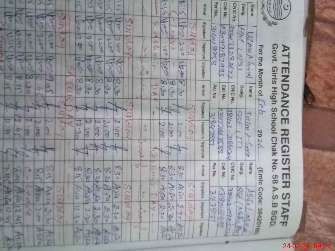 | Name: UZ**** MA**** Designation: (School Headmaster's/Headmistress's) HM Phone/Cell Number: 03**** |
