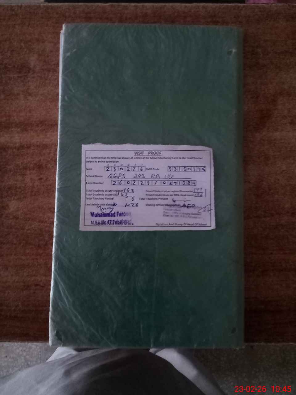 | EMIS Code: 33150175 | Name of School: GGPS CHAK 293 RB II | |||