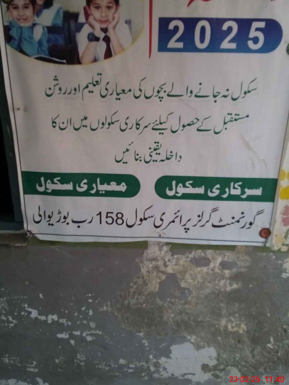 | EMIS Code: 33150156 | Name of School: GGPS CHAK 158 RB BOORRY WALI | |||