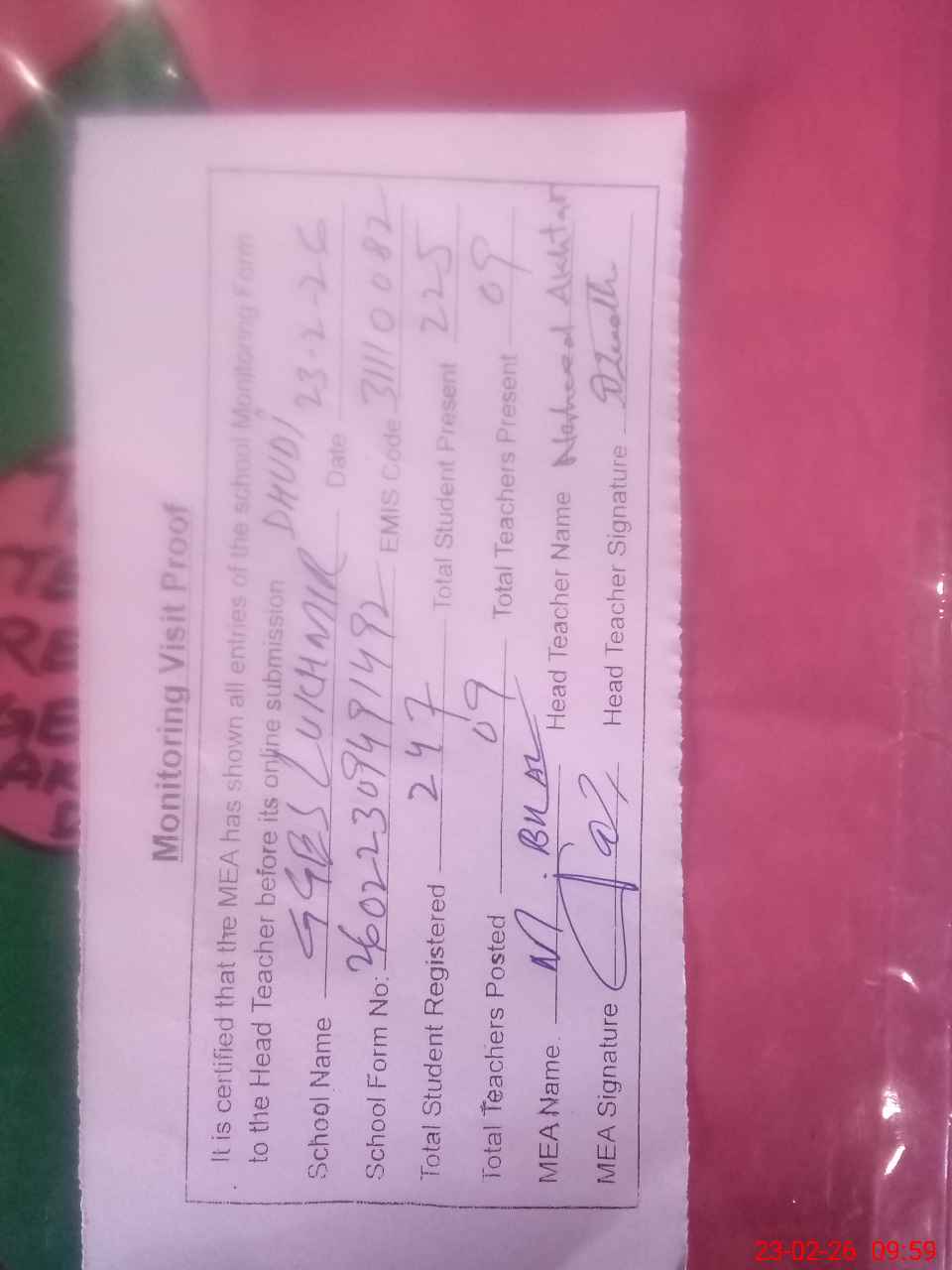 | EMIS Code: 31110082 | Name of School: GGES LUKHMIR DHUDI | |||