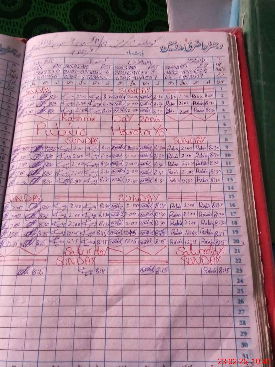 | CNIC | Full Name | Designation | R/C | Absence During Last Calender Month |