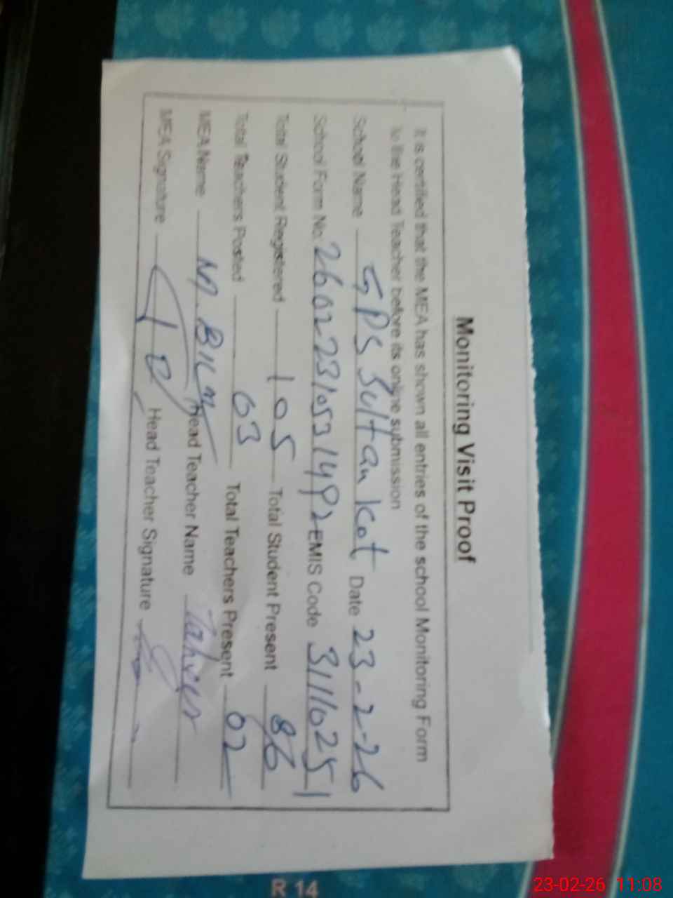 | EMIS Code: 31110251 | Name of School: GPS SULTAN KOT | |||