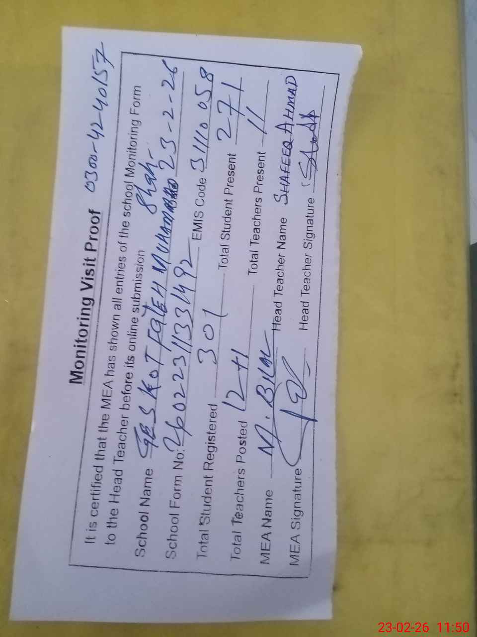 | EMIS Code: 31110058 | Name of School: GES KOT FATEH MUHAMMAD SHAH | |||