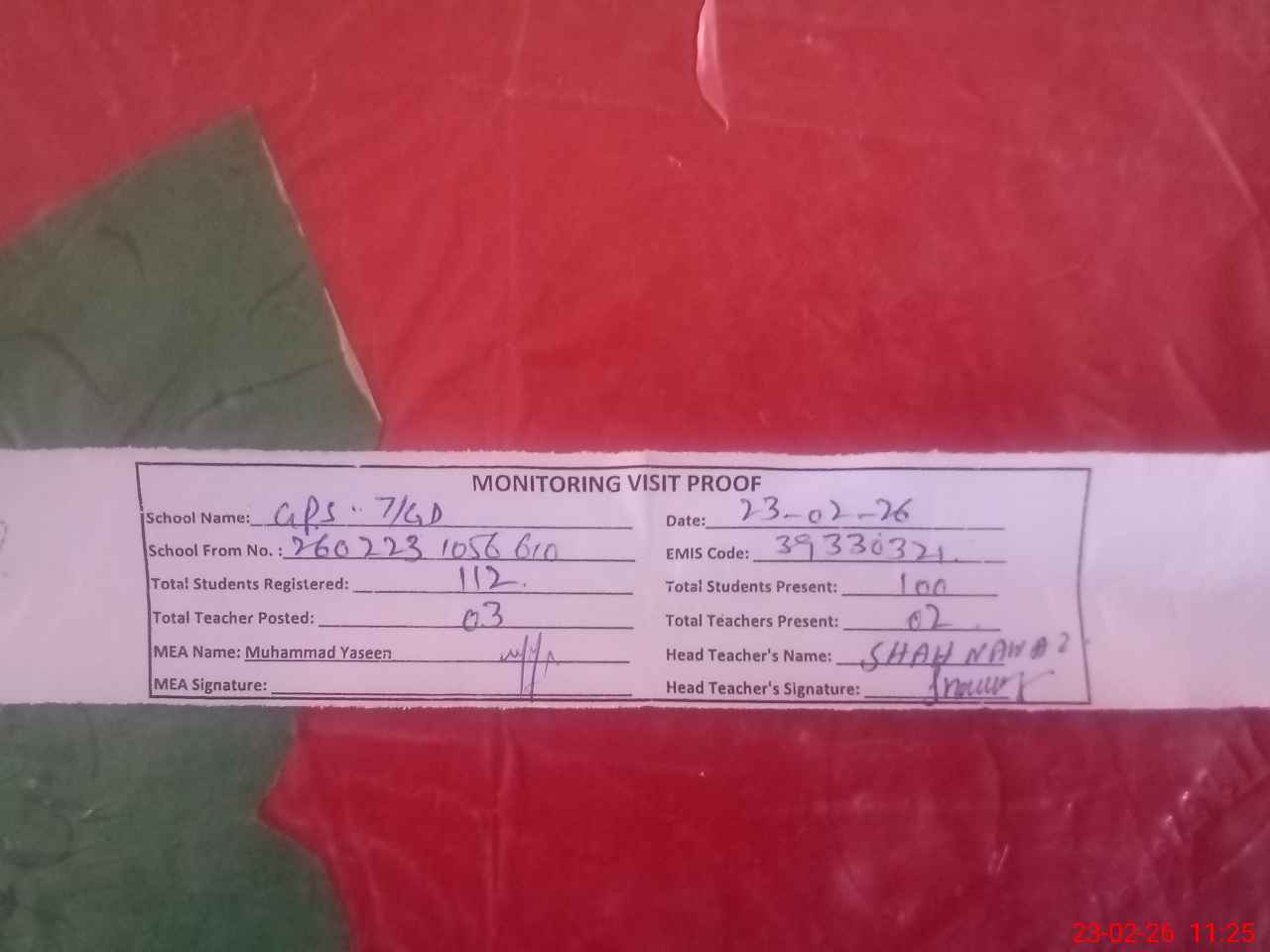 | EMIS Code: 39330321 | Name of School: GPS CHAK 7/GD | |||