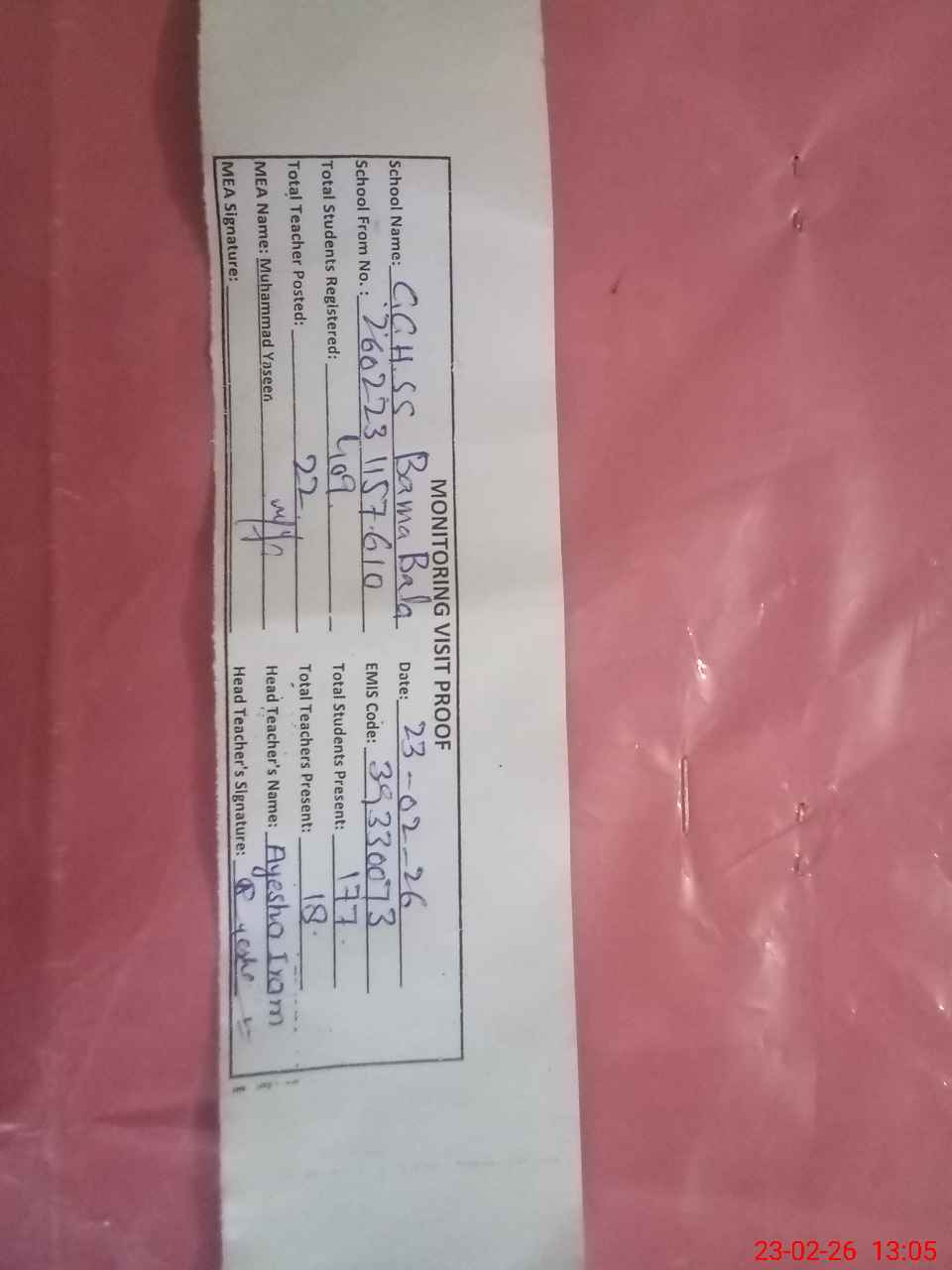 | EMIS Code: 39330073 | Name of School: GGHSS BAMABALA | |||