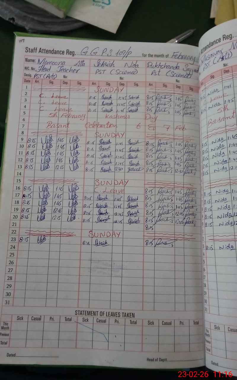 | Name: Ma**** At**** Designation: (School Headmaster's/Headmistress's) PST Phone/Cell Number: 03**** |