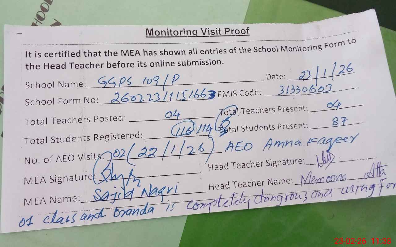 | EMIS Code: 31330603 | Name of School: GGPS 109/P | |||