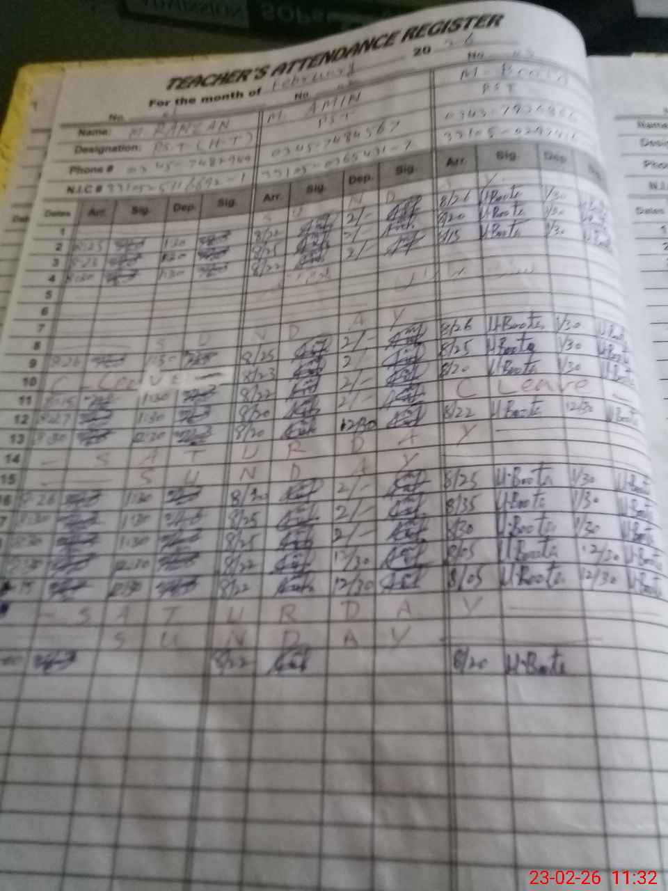 | Name: MU**** RA**** Designation: (School Headmaster's/Headmistress's) PST Phone/Cell Number: 03**** |