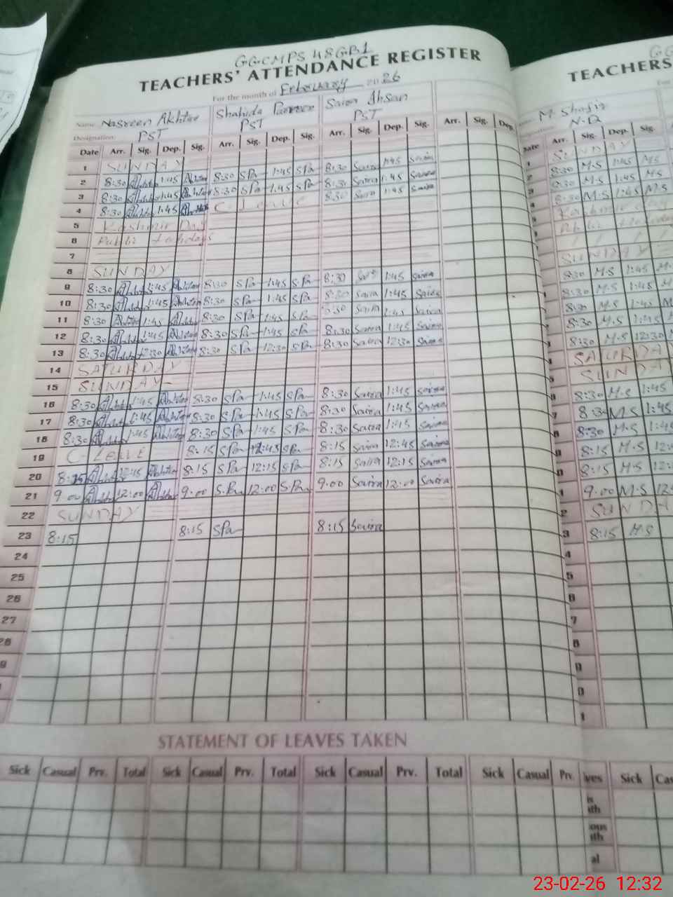 | Leave | Duty | Absent | Maternity | Medical | Ex- Pak |