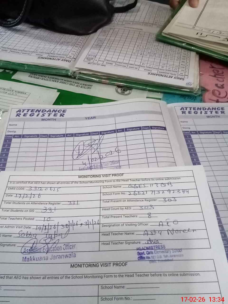 | Attendance Register | Head Teacher | MEA with School | Visit Proof |