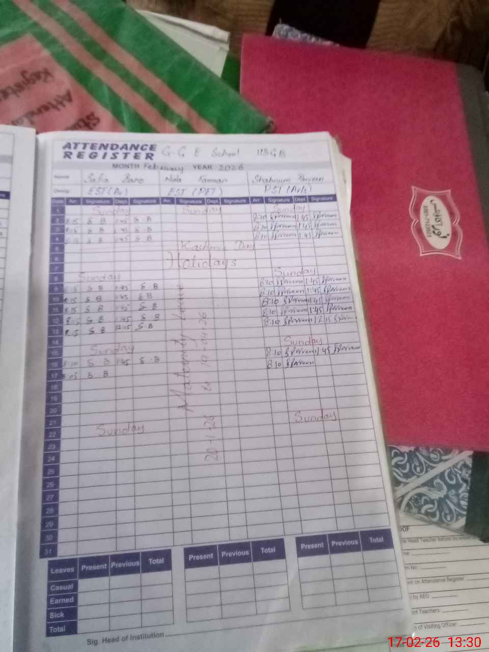 | 33**** | Mi**** Me**** | PST Science/Maths | Regular | 0 | 0 | 0 | 0 | 0 | 0 | 0 | 0 | 0 | Maternity |