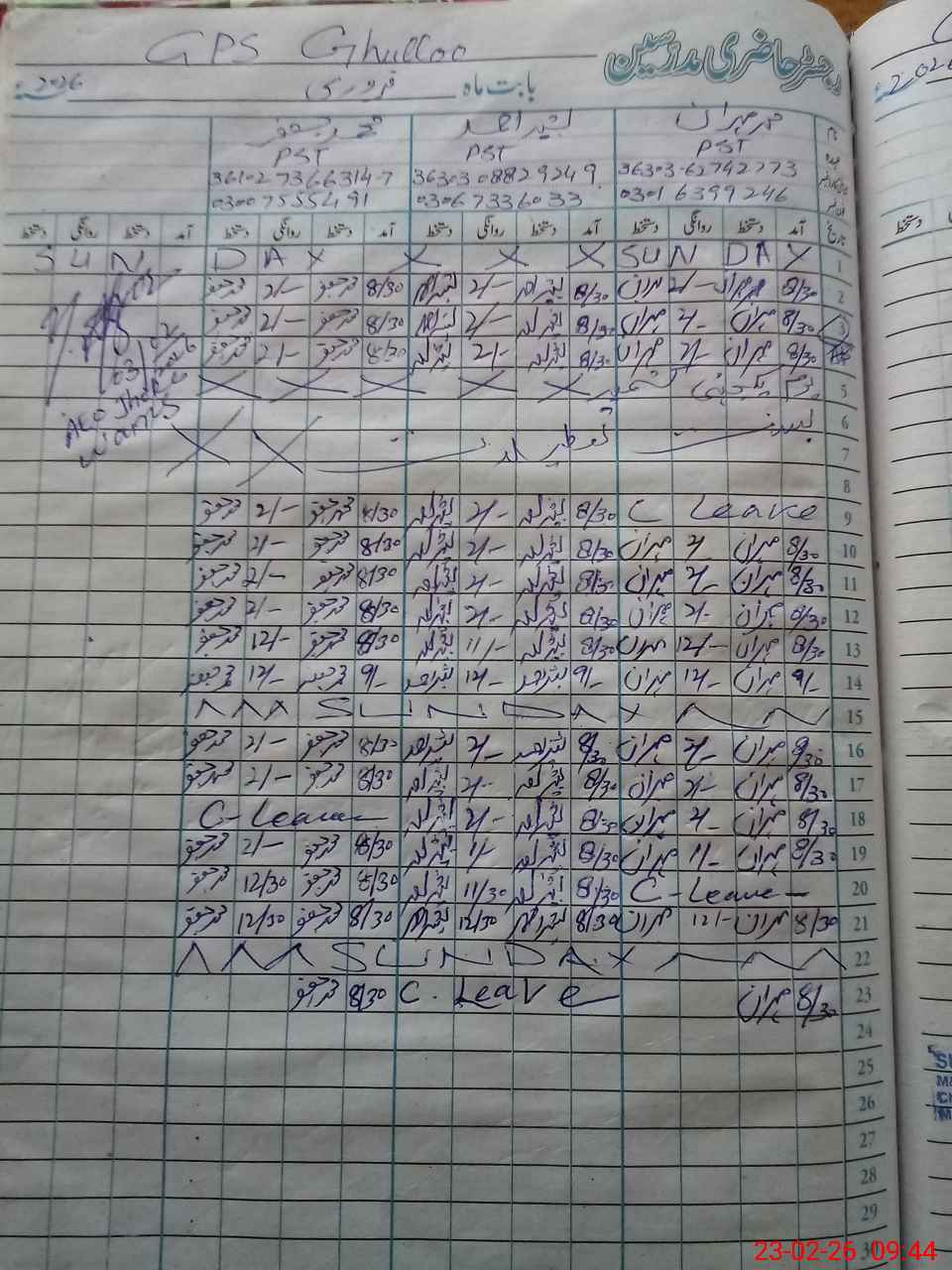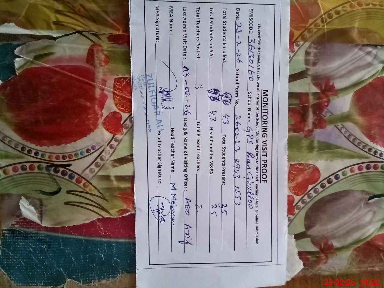 | EMIS Code: 36130156 | Name of School: GPS GHULLOO BASTI GHULLOO MULTAN | |||
