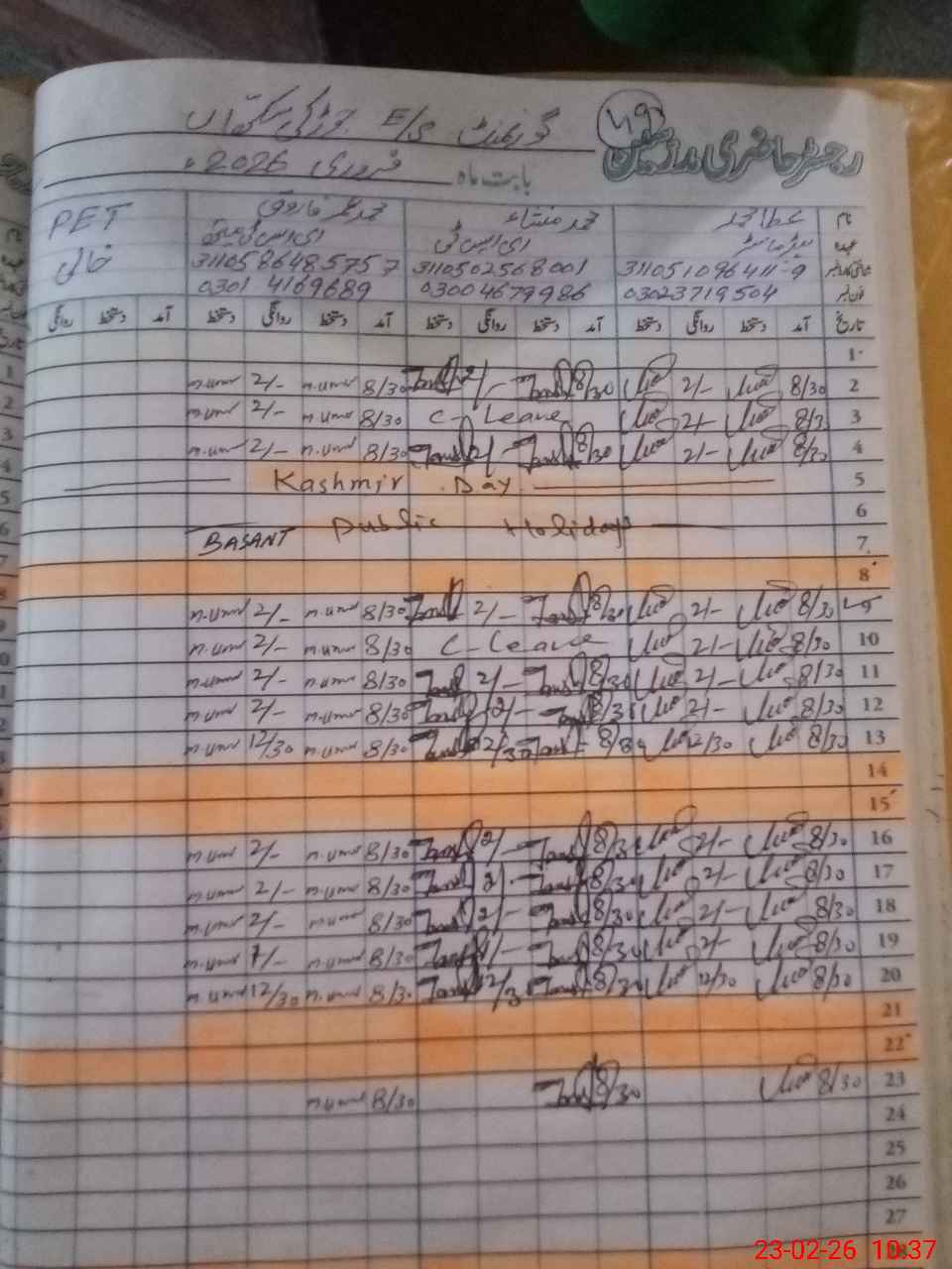 | CNIC | Full Name | Designation | R/C | Absence During Last Calender Month |