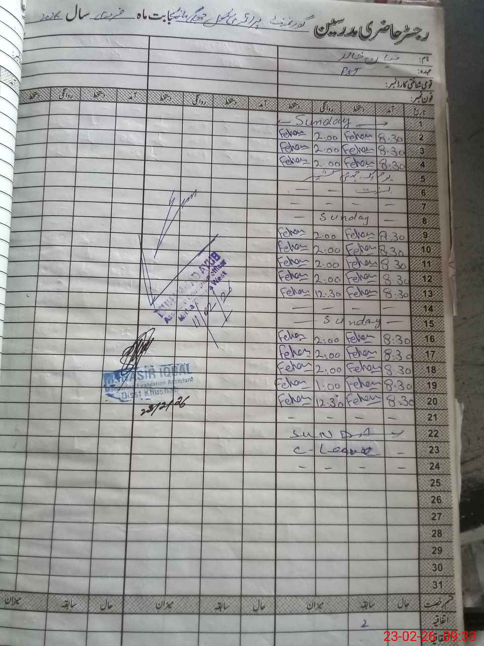 | 38**** | Ha**** Fe**** Kh**** Qu**** | PST Science/Maths | Regular | 2 | 29 | 0 | 0 | 0 | 0 | 0 | 0 | 2 | Casual |