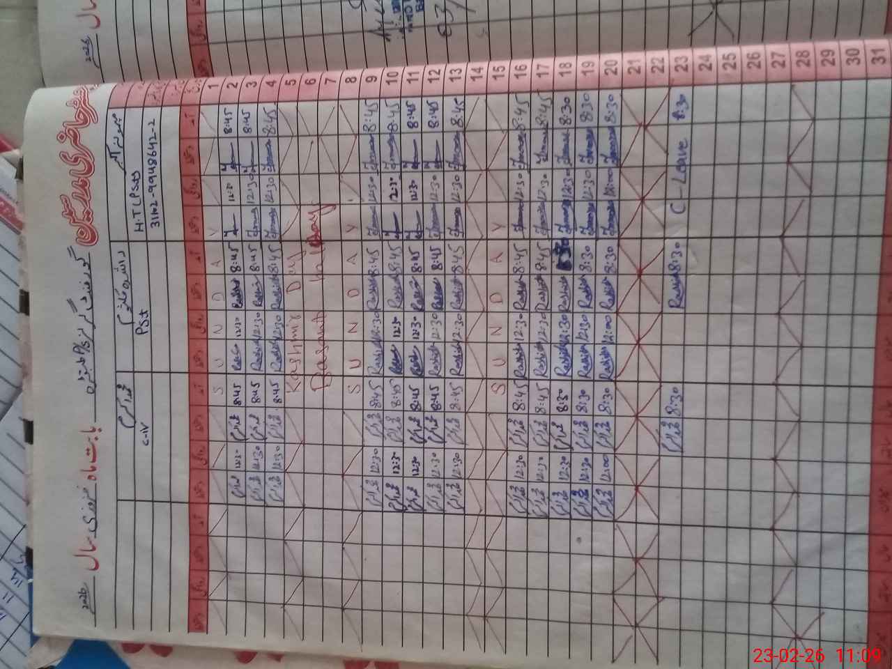| CNIC | Full Name | Designation | R/C | Absence During Last Calender Month |