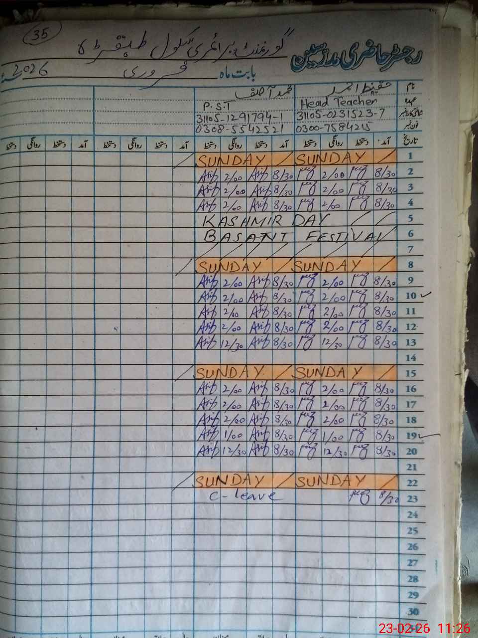 | Name: HA**** AH**** Designation: (School Headmaster's/Headmistress's) PST Phone/Cell Number: 03**** |