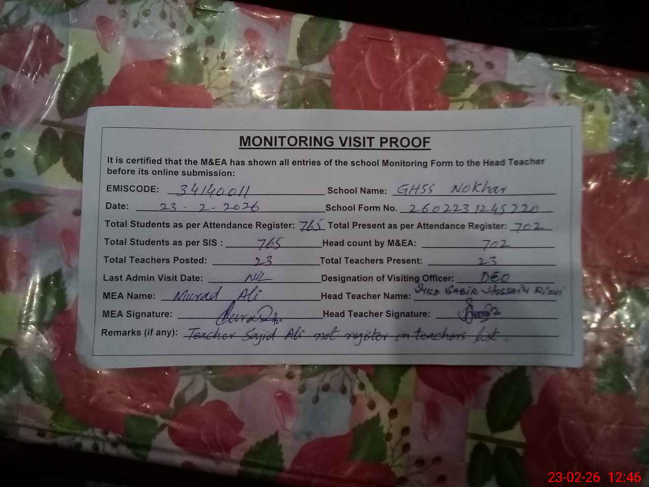 | EMIS Code: 34140011 | Name of School: GHSS NOKHAR | |||