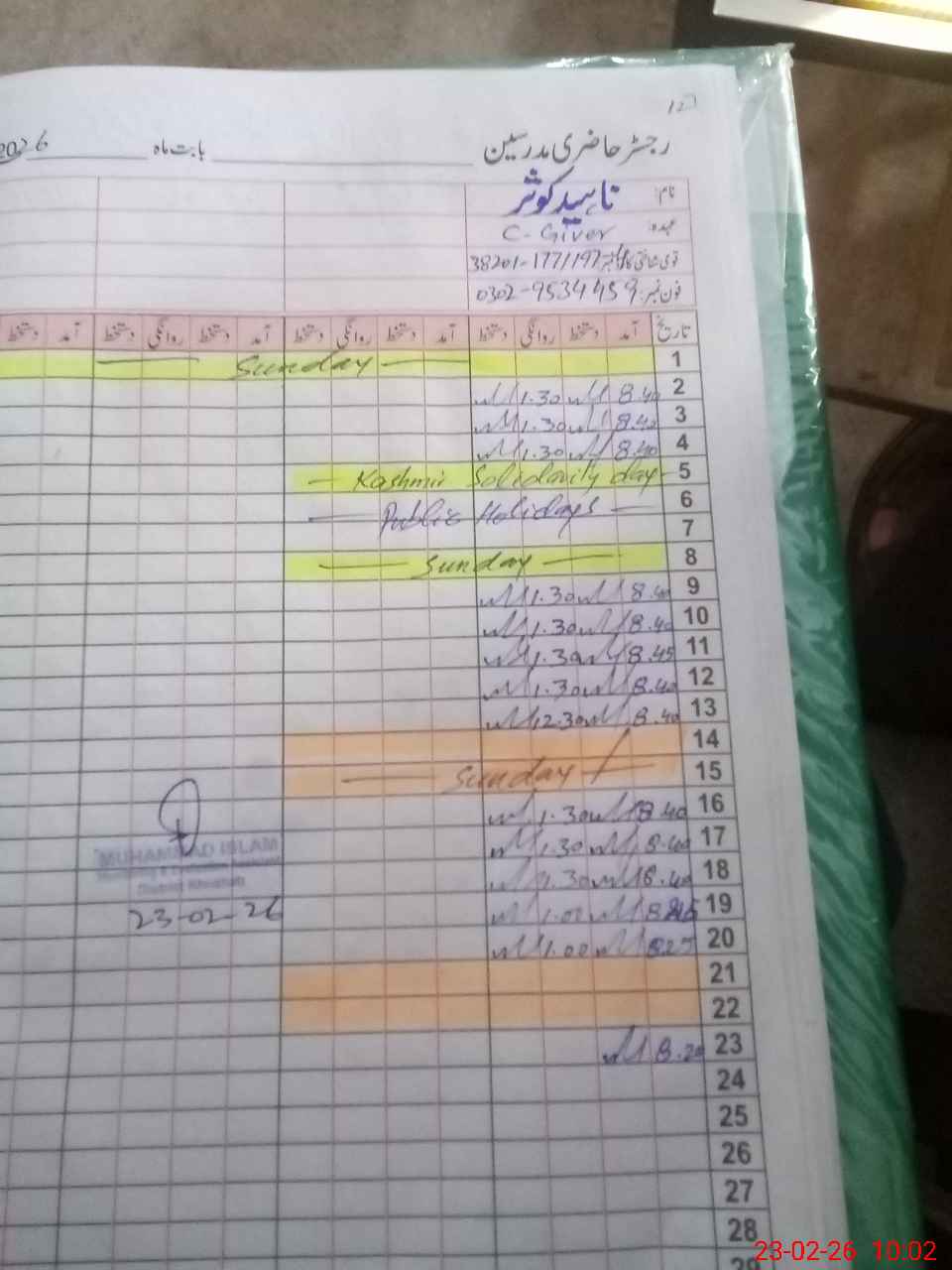 | CNIC | Full Name | Designation | R/C | Absence During Last Calender Month |