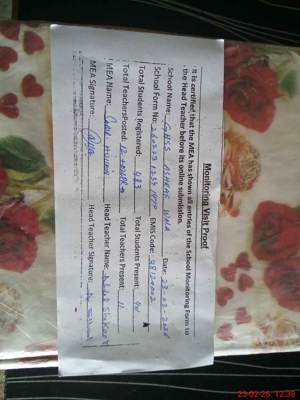 | EMIS Code: 38120002 | Name of School: GHSS ASHRAF WALA | |||