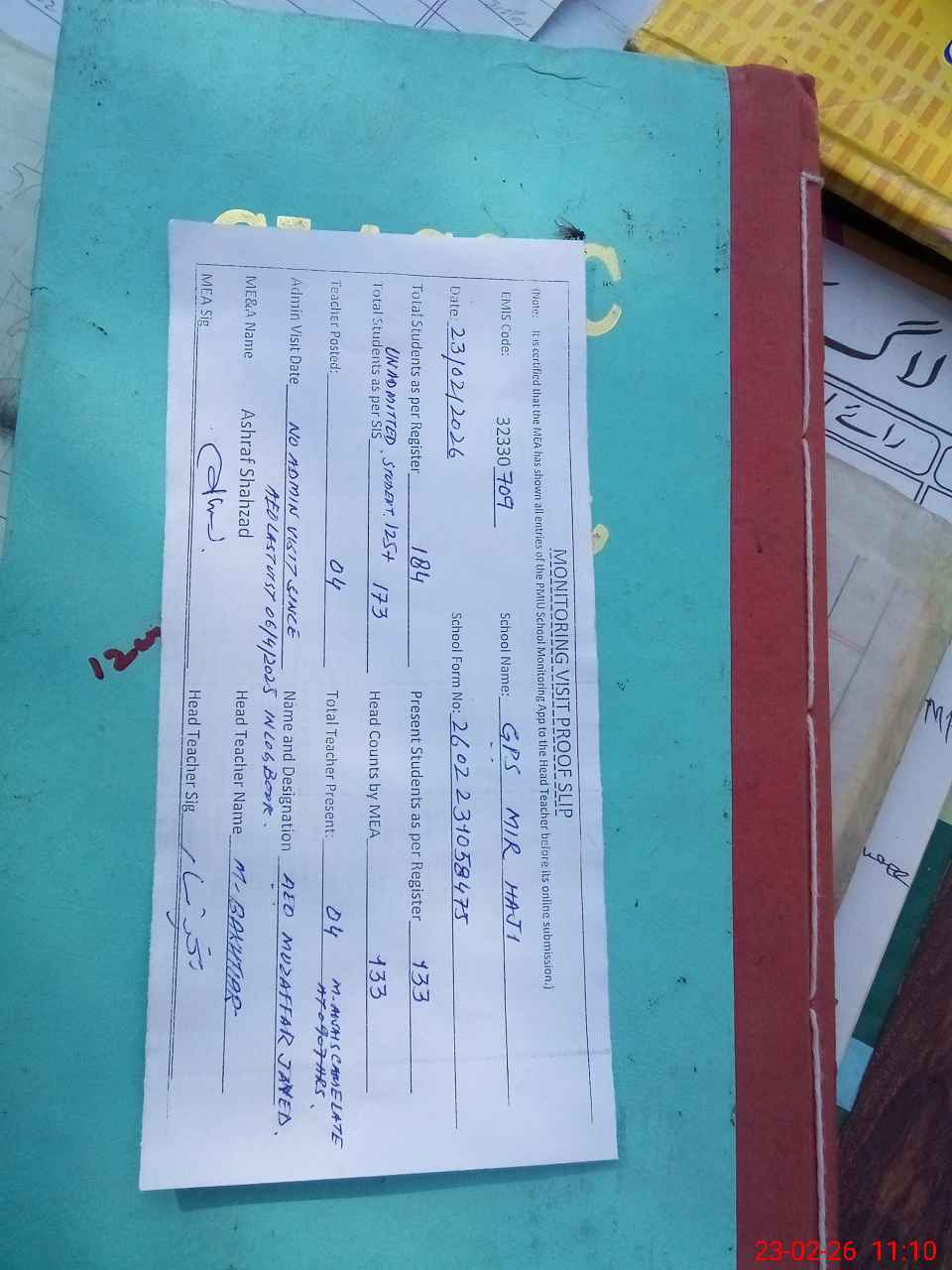 | EMIS Code: 32330709 | Name of School: GPS MIR HAJI | |||