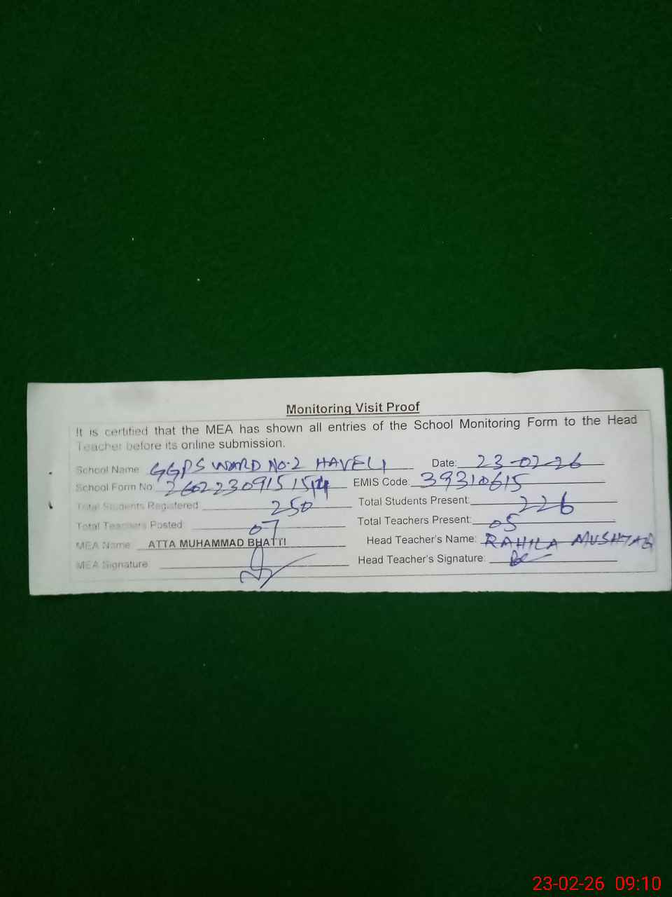 | EMIS Code: 39310615 | Name of School: GGPS WARD NO.2 HAVELI | |||