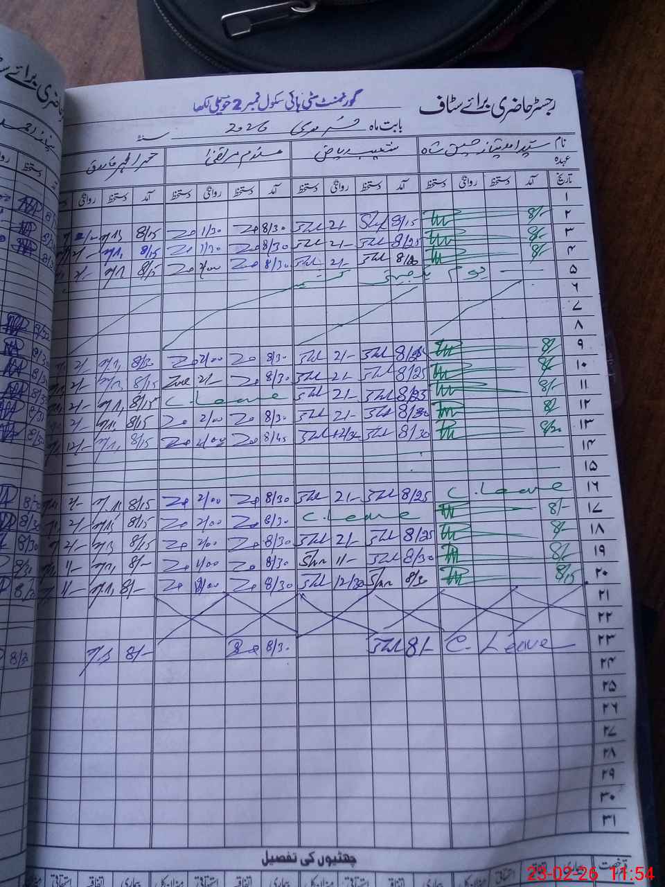 | 35**** | Sy**** Im**** Hu**** Sh**** | PRINCIPAL | Regular | 0 | 0 | 0 | 0 | 0 | 0 | 0 | 0 | 0 | Casual |